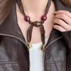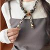 Leopard Print Beaded Silk Scarf Necklace with Cashew Flower and Wood Beads, Retro Style, Long Pull-Out Sweater Chain.