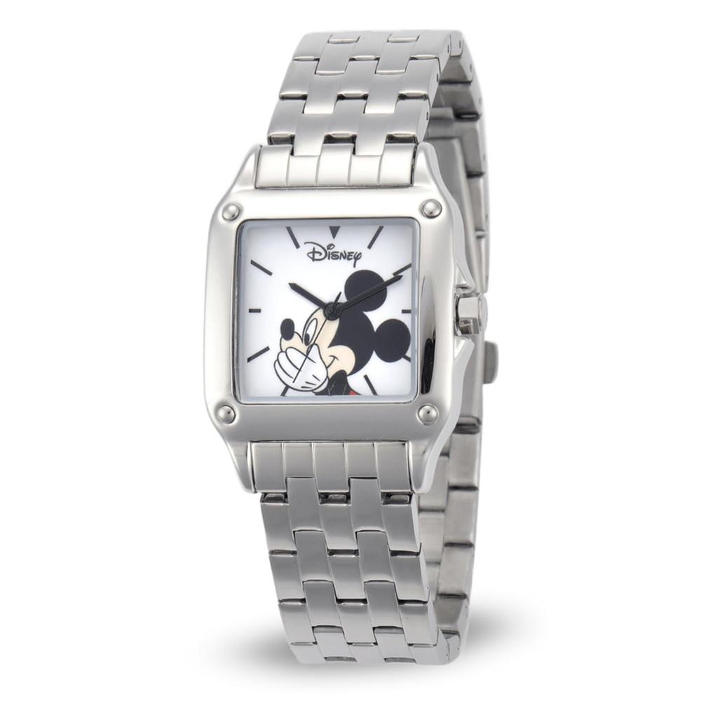 Disney Officially Licensed Mickey Mouse Womens Square Watch Silver Bracelet