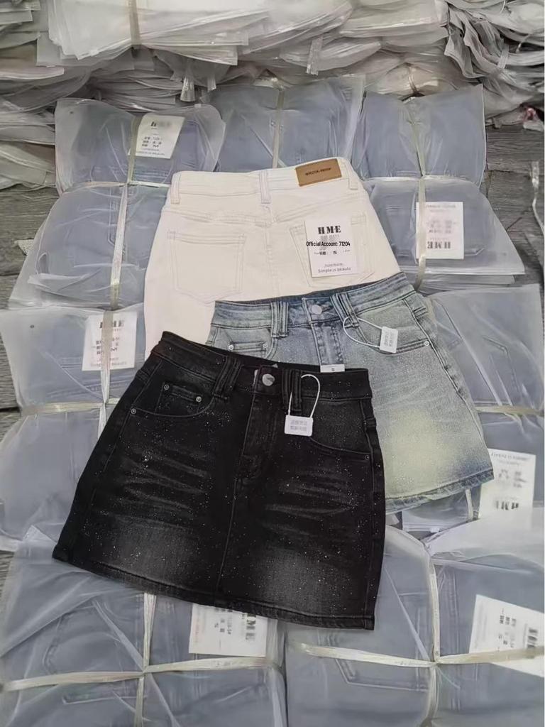 High Waist Rhinestone Starry Sky Denim Mini Skirt for Women - Retro, Slimming, and Flattering — comprar online na loja virtual Joom