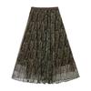 Fei Yuan Elegant High Waist Retro Paisley Mesh Midi Skirt for Women - Early Spring Collection