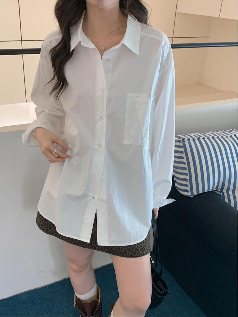 Spring Oversized Korean Style Solid Color Loose Long Sleeve Shirt for Women