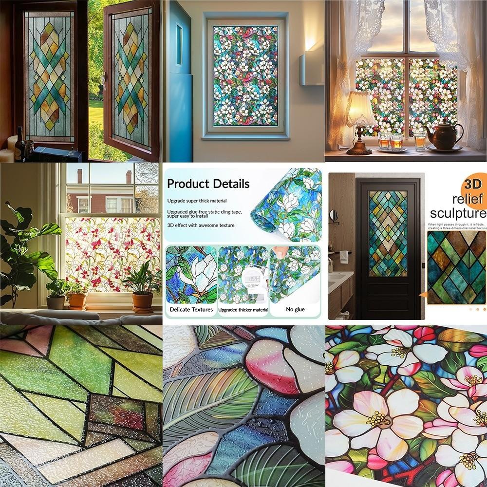 Static Cling Stained Glass Film Rainbow Pattern Static Cling Film for Windows Doors Sidelight — comprar online na loja virtual Joom