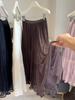 Elegant Pleated Mesh Patchwork A-Line Skirt - Women's Autumn Elastic Waist Midi