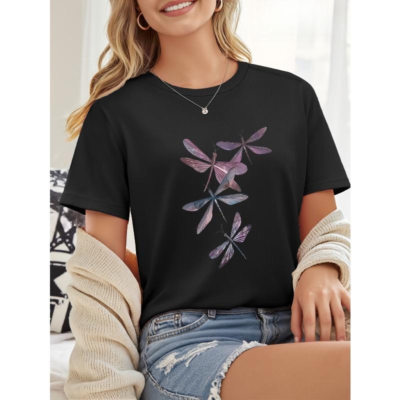 European sizes Dragonfly Series Printed Round Neck Short Sleeve — comprar online na loja virtual Joom
