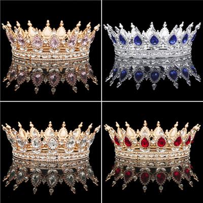 Cocar de casamento redondo grande coroa barroca, retrô, cor europeia, cristal, rainha