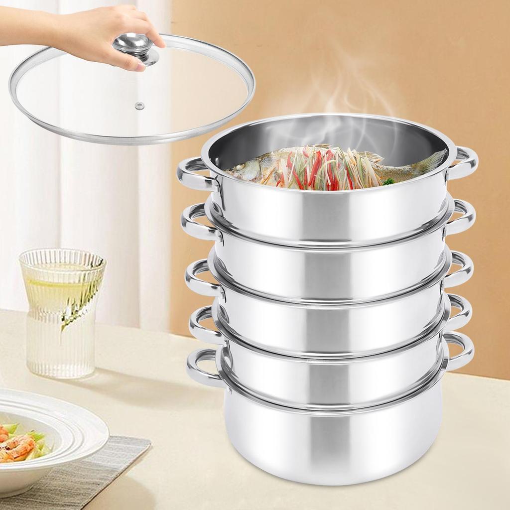 Panela de Cozimento a Vapor de Aço Inoxidável de 5 Camadas - Vaporizador de 11 Polegadas para Cozinhar Alimentos - Tampa de Vidro - Adequado para Tamales, Legumes, Bolinhos e Frutos do Mar — comprar online na loja virtual Joom