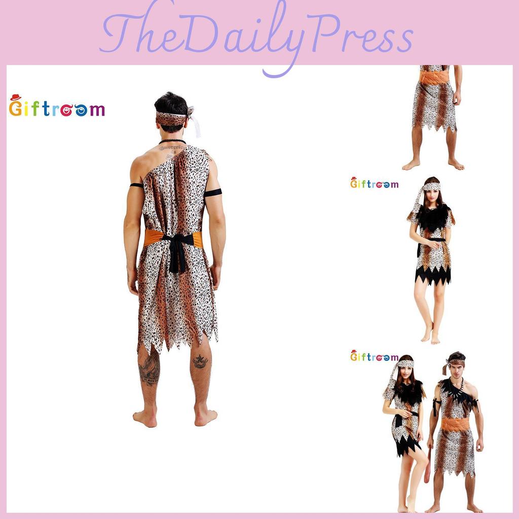 Casal Primitivo Moderno Estampa de Leopardo Fantasia Selvagem Traje Engraçado para Performance de Palco