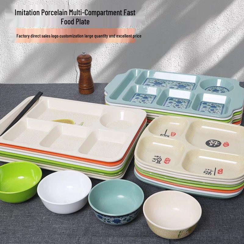 Drop-Proof Melamine Six-Grid Food-Grade Dining Plate