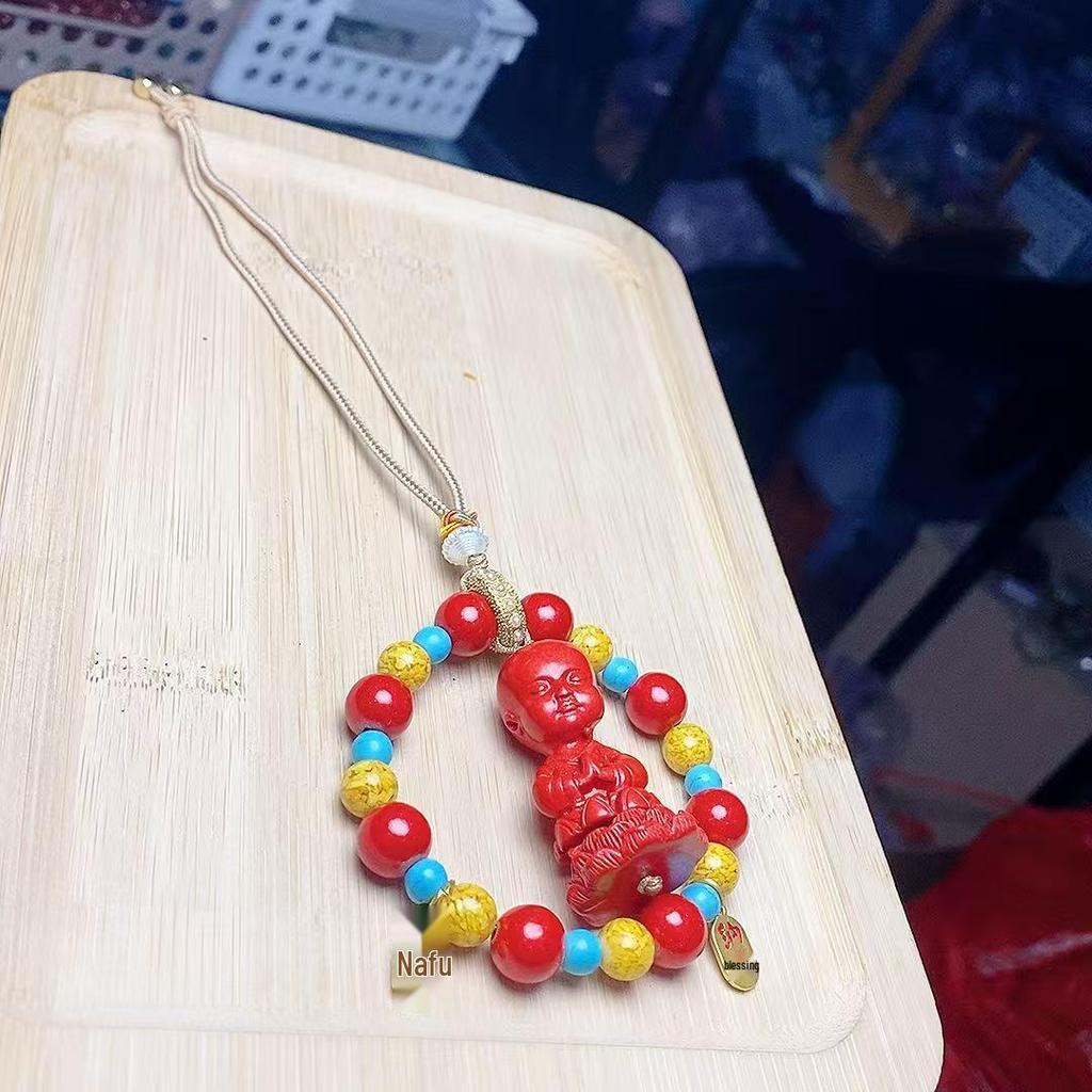 Vermilion Sand Baby Buddha Zodiac Car Hanging Ornament - Simple Design for Male and Female.