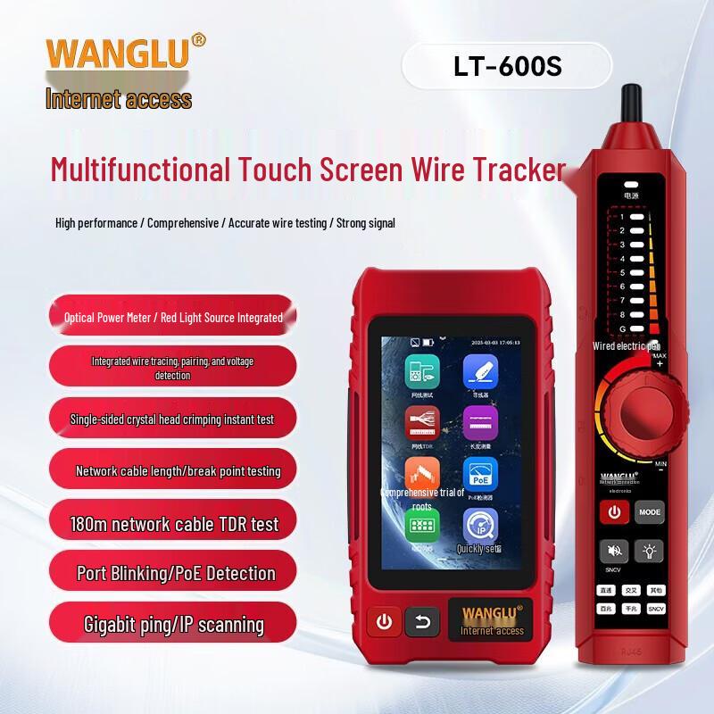 WANGLU LT-600S Touchscreen Rechargeable Network Cable Tester with OPM & PING CN plug (adapter included)