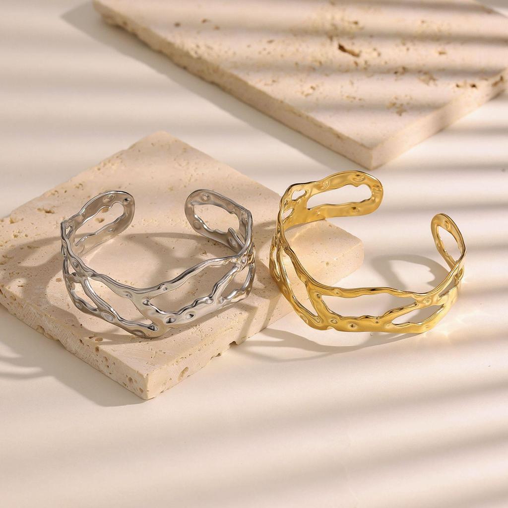 Stylish 18K Gold-Plated Hollow-Out Titanium Steel Bracelet - Non-Fading, High-Grade Open Design