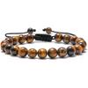 Pulseira Tecida Masculina Olho de Tigre e Pedra Vulcânica - Presente de Joia Feito à Mão, Contas de Ágata Negra de 8mm