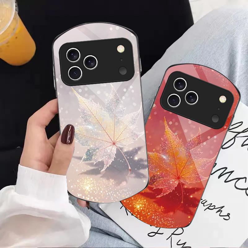 Green Maple Leaf Texture For iPhone 17 16 15 14 Pro 13 Plus 12 mini 11 Pro Max XR X S 7 8 Elliptical Tempered Glass Phone Case — comprar online na loja virtual Joom