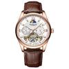 Relógio Masculino Automático Luminoso à Prova d'Água com Pulseira de Couro - Design Sol Lua Estrelas