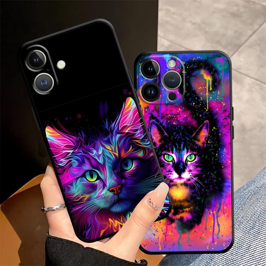 Cool Colored Cat Case for Apple iPhone 17 Pro Max 16 15 Pro 7 8 11 13 12 XR XS MAX Air 14 Funda Phone Cover