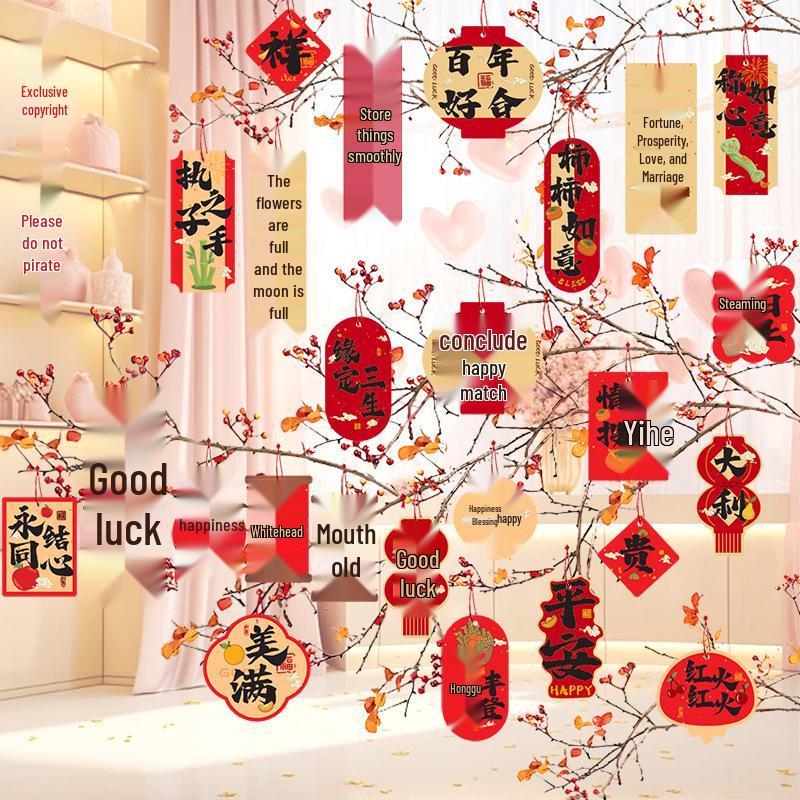 Year of the Horse Newlywed Bonsai Pendant with Double-Sided Joy Character and Lantern Decoration — comprar online na loja virtual Joom