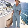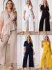 Estilo de cor sólida simples: Apresentando um design minimalista de cor sólida, este conjunto casual exala elegância sem esforço.. Seu estilo discreto facilita a combinação com diversos acessórios ou calçados, permitindo que você crie múltiplos looks chiques para diferentes ocasiões.