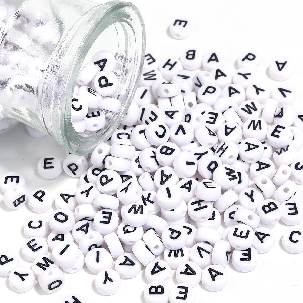 100Pcs 7mm Black White Acrylic Alphabet Beads Flat Round Loose Spacer Letter Beads For DIY Craft Bracelet Supplies Wholesale — comprar online na loja virtual Joom