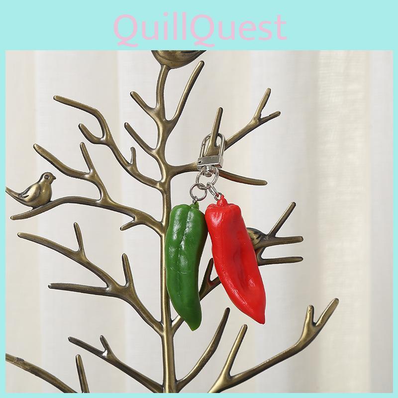 Chaveiro Pimentão Vermelho e Verde Realista Pingente Criativo de Saco de Legumes