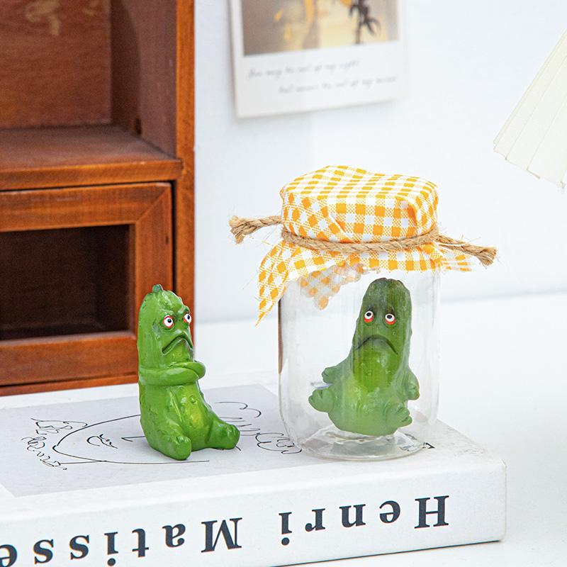 Grumpy Pickle In A Jar Sculpture Creative Resin Pickle In Jar Figurine Glass Pickle Statue Mini Grumpy Pickle Cartoon Display