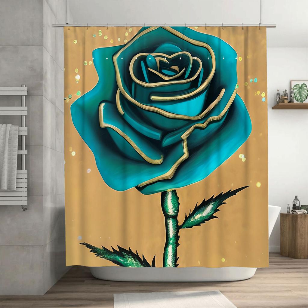 Teal Rose Shower Curtain - Luxurious Gold-Trimmed Floral Design For A Waterproof And Unique Bathroom Dcor Set