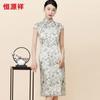 Rochie elegantă de mătase în stil Qipao de vară cu capac pentru burtă și mătase elegantă de dud pentru femei