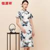 Rochie Cheongsam Elegantă din Mătase de Dud pentru Femei - Croială Lejeră cu Design Imprimat