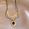 Colier cu pandantiv geometric din ochi de tigru vintage - Design de nișă pentru femei