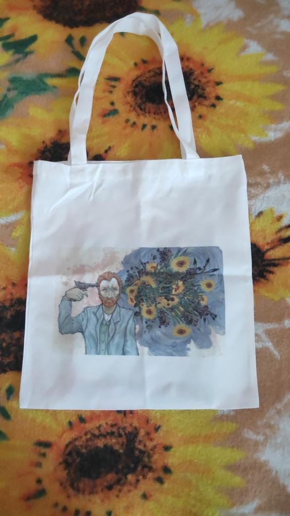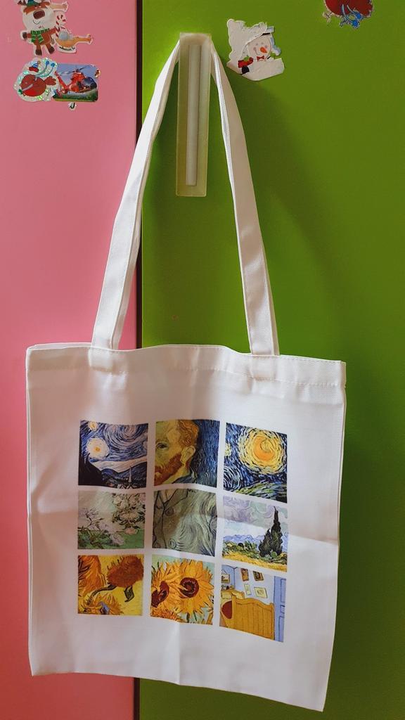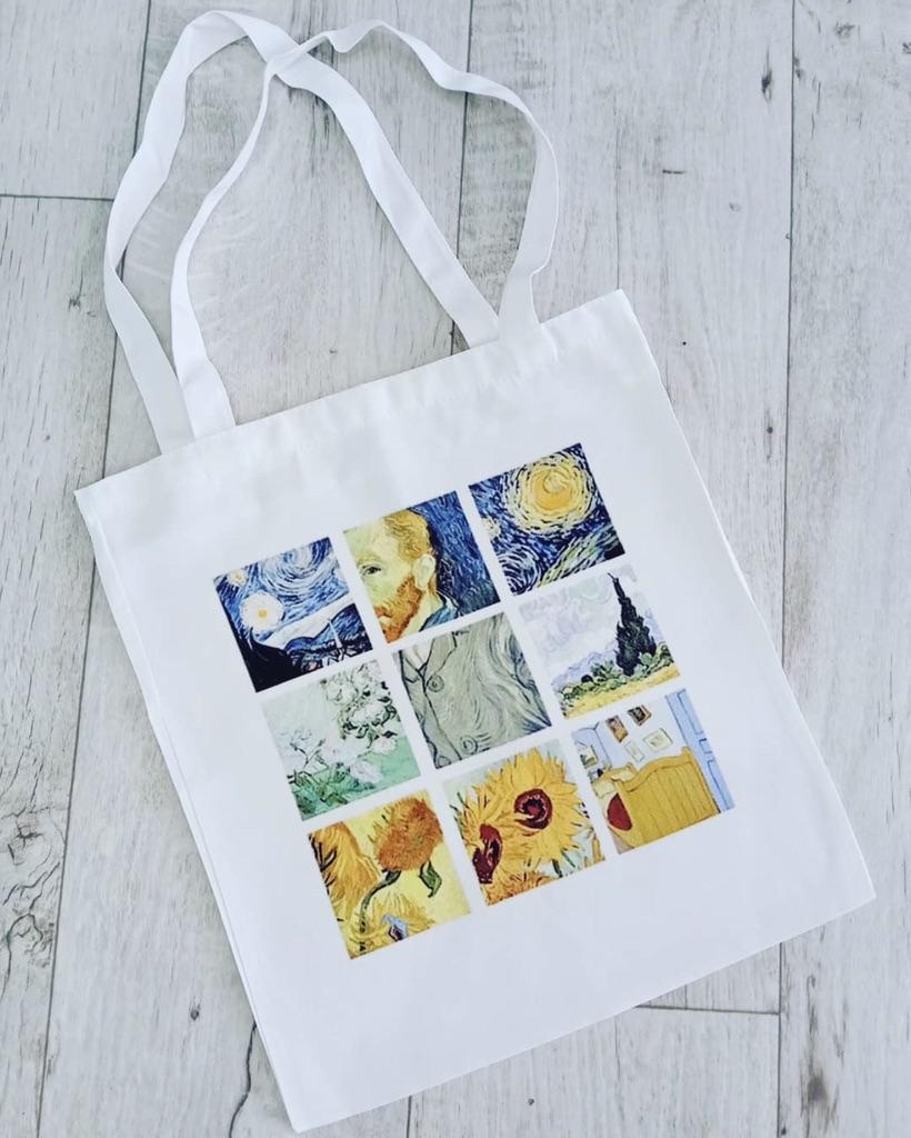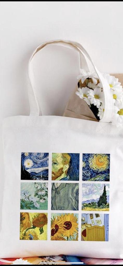 Geantă de umăr din pânză imprimată cu desene animate Van Gogh pentru femei Harajuku Ulzzang