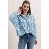 Kimono cu guler șal cu model floral, albastru bleumarin pentru femei