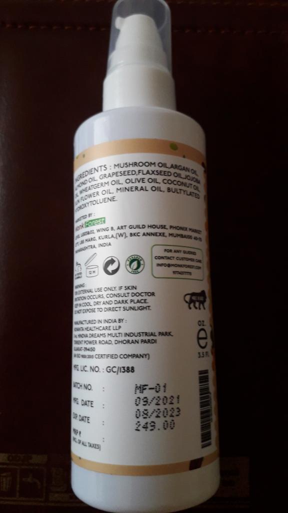 👍Ulei foarte bun pentru căderea părului din India de la MonkForest! 📌 Combinat cu ulei de argan, ulei de migdale, ulei de semințe de struguri, ulei de in, ulei de jojoba, ulei de germeni de grâu, ulei de măsline și ulei de cocos; Acesta este uleiul de păr semnătură al lui Monk Forest.. De la părul uscat la cel gras, uleiul de păr MonkForest este ideal pentru toate tipurile de păr. Foarte bogat in antioxidanti 📍Instrucțiuni: Masați uleiul de păr pe scalp cu vârfurile degetelor într-o mișcare circulară în sens invers acelor de ceasornic. Nu freca tare. 📌 Pentru cele mai bune rezultate, lăsați peste noapte. 😍Am văzut personal efectul pe care îl recomand cu încredere.