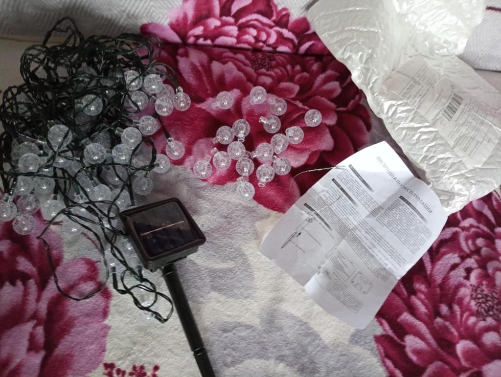 Am primit coletul cu trei produse, foarte bine împachetate. Un minus... Foarte mici beculețele acelea colorate. Și lampa solară era bine să fie mai mare. Suporturile sunt la fel foarte micuțe.