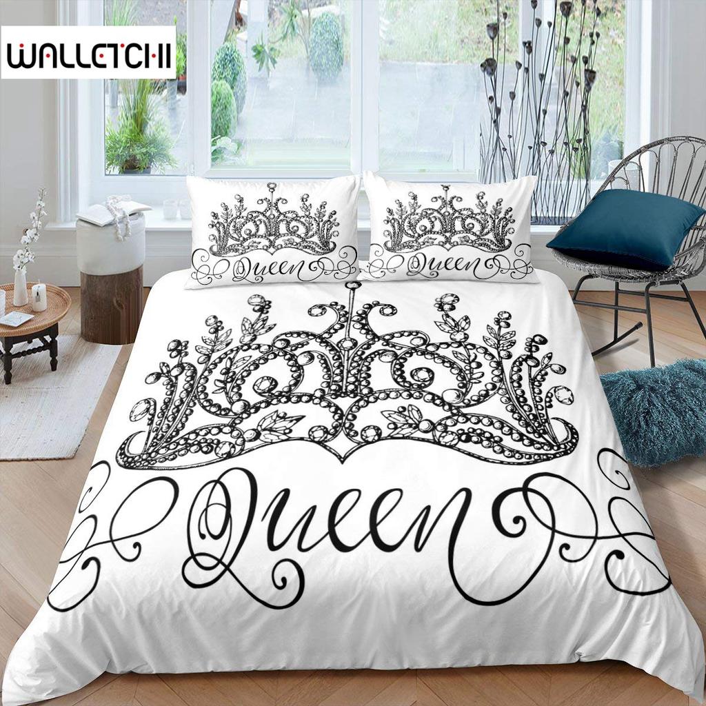 Queen Duvet Cover Set Hand Drawn Crown with Queen Lettering Baroque Style Elements Twin Bedding Set Black and White Quilt Cover — cumpără ieftin în cadrul magazinului online Joom