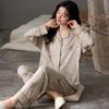 Purple Tulip Pajamas Set Women Sleepwear Cotton Long Sleeves Long Pants Autumn Winter Girl Pyjamas Soft Pijamas Cozy Button Cute