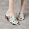 Pantofi de vară de damă, stil etnic, cu toc gros, fund moale, sandale din piele de vacă