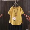 Bestseller de vară pentru femei, tricou grafic elegant, zilnic gratuit, cămașă vintage din in, cu gâtul turn, cămașă cu mâneci scurte, top s-4xl