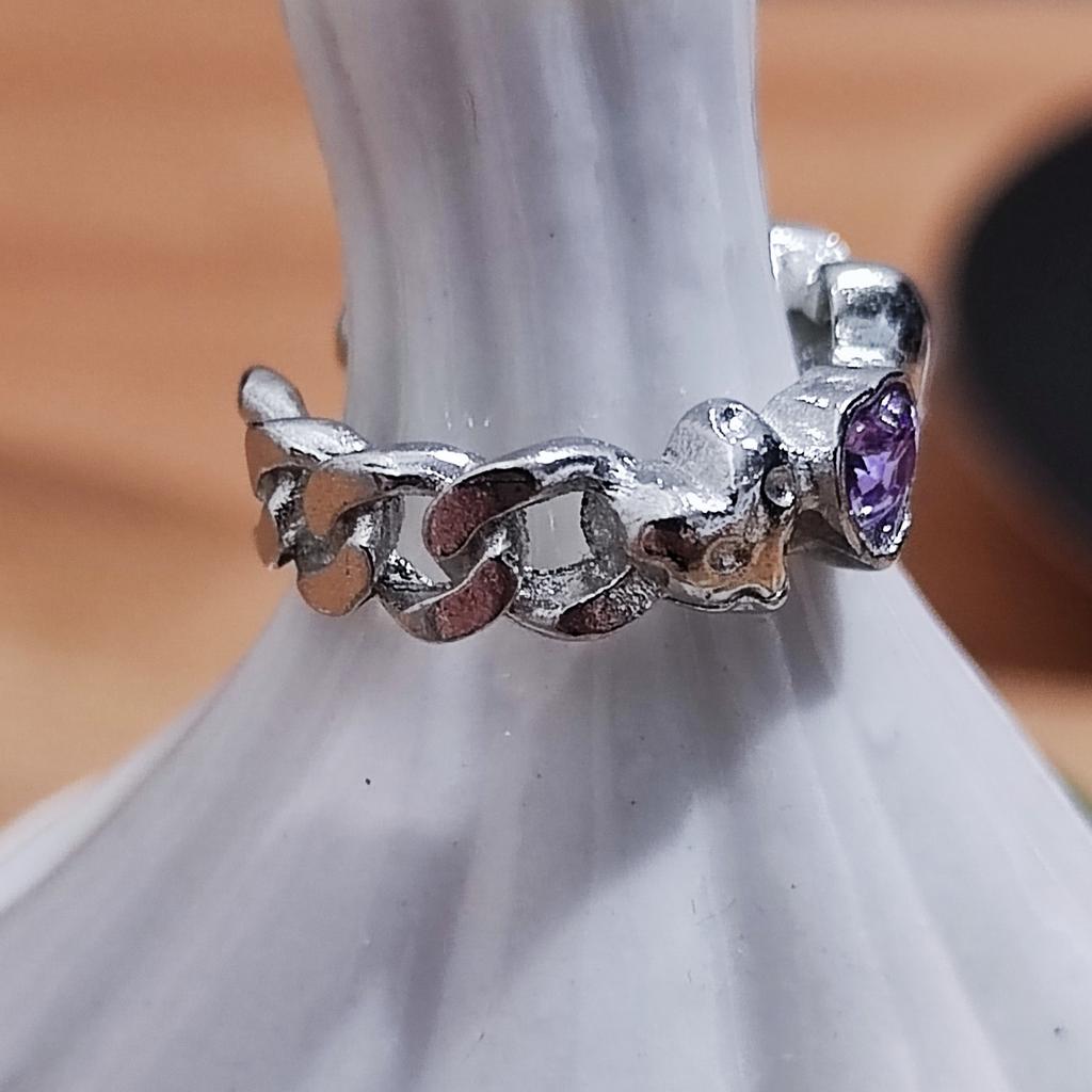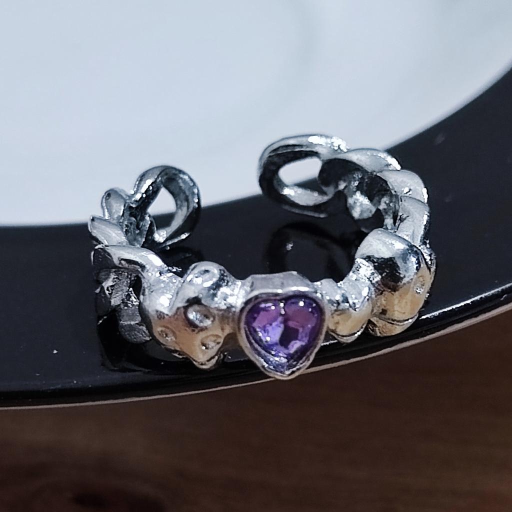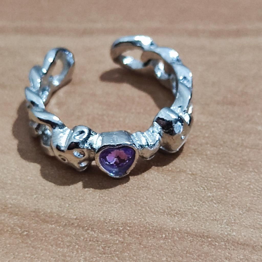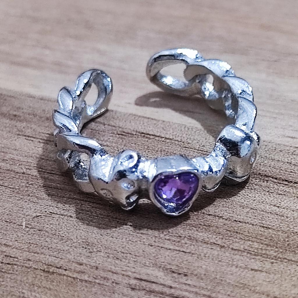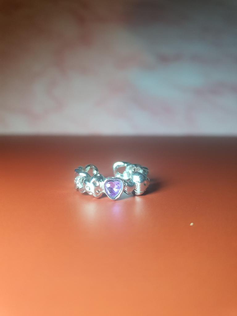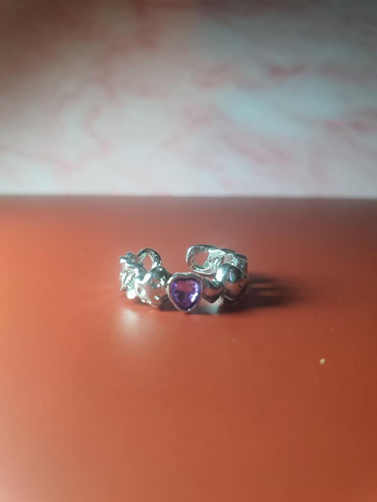 Îmi place că are o inimă și, cum culoarea mea preferată este violetul, sunt îndrăgostită de acest inel. Unghiul inelului este puțin mai gros și are mici detalii ca și cum ar fi încrucișat și câte două inimioare argintii pe ambele părți.