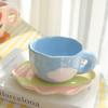 Cute Hand Painted Coffee Cup with Saucer Irregular Flower Cloud Blue Sky Creative Breakfast Milk Tea Mug Gift Set Handmade Drink
