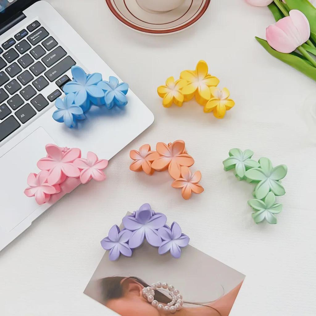 Agrafă de păr cu trei flori în culori bomboană de vară: Clips de păr simplu, dulce și drăguț cu formă de rechin