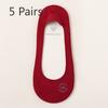 5 Pairs Red Socks Women's Short Boat Socks No Leak Edge Ultra-shallow Mouth with High Heels No Trace, Non-slip Invisible No Drop Heel