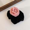Korean Pink Velvet Camellia Hair Claw Hairpin for Women Vintage Elegant Flower Shape Shark Clip Headwear Hair Accessories