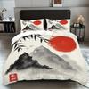 Set cuvertură de pilota în stil japonez King Queen Full size Ukiyo-e Theme Wave Pattern Set de lenjerie de pat din poliester Stil exotic de munte Fuji