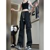 American Retro Niche Work Pants for Women Three-dimensional Pocket Waist Straight Wide-leg Streamers Loose Casual Floor Trousers