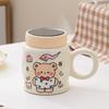 Mirror Covered Ceramic Cup with Lid Spoon Cartoon Mug Girl Cute Household Large Capacity Drinking Cup