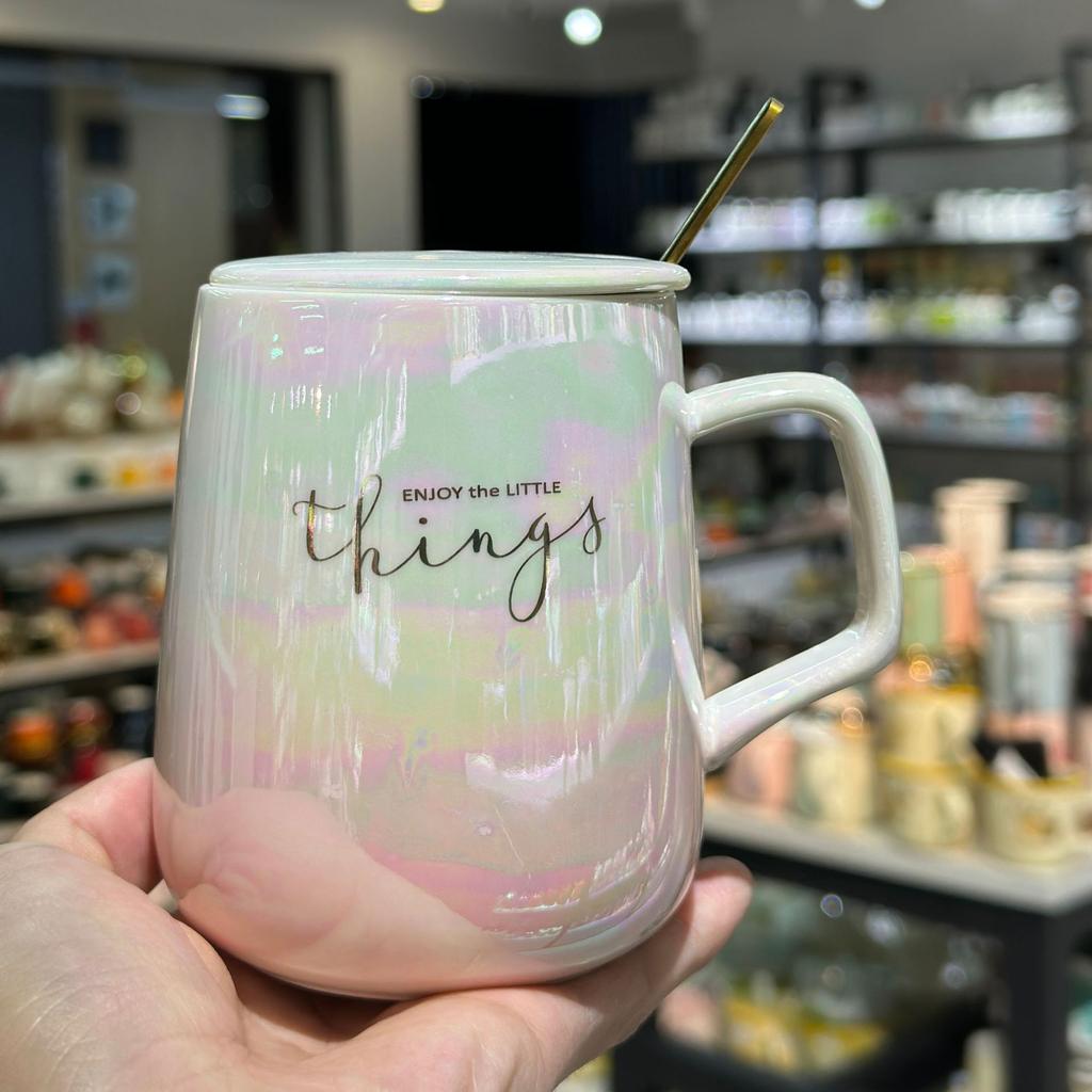 Pearl Glaze Ceramic Cup with Lid Spoon Couple Mug Pearl Fantasy Color Cup High Value High-quality Water Cup for Household Use — cumpără ieftin în cadrul magazinului online Joom