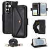 For Samsung Galaxy S25+ Leather Case Magnetic Closure Wallet Stand Phone Cover with Crossbody Strap