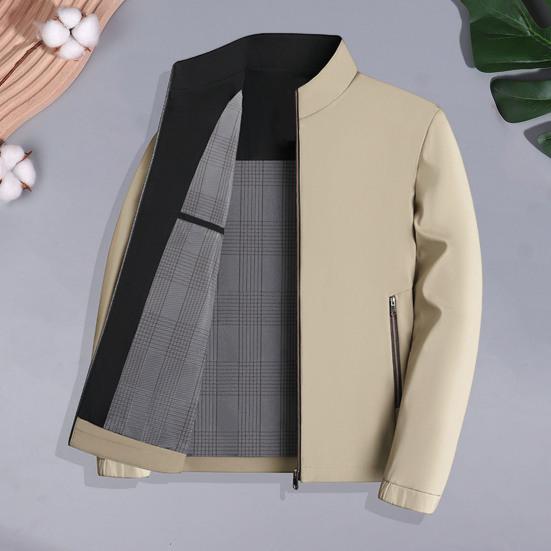 Jachetă pentru bărbați Guler cu mânecă lungă, culoare solidă, căptușeală în carouri, haină, buzunare, cu fermoar, îmbrăcăminte casual — cumpără ieftin în cadrul magazinului online Joom