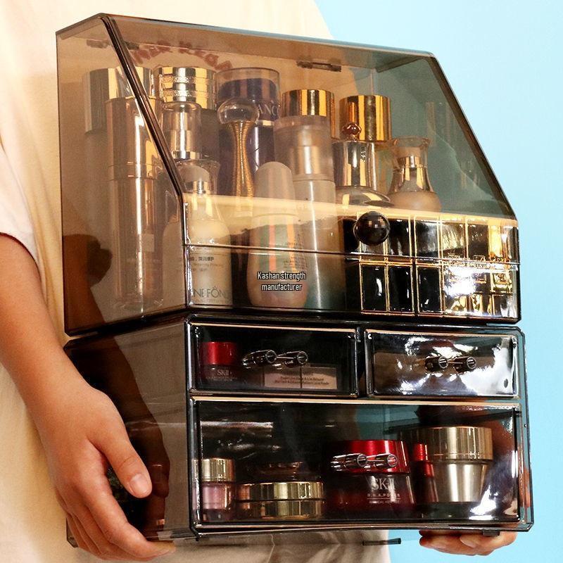 Organizator cosmetic transparent rezistent la praf cu capacitate mare pentru rujuri și produse de îngrijire a pielii