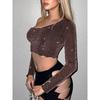 Fashion Spring/Summer One-Shoulder Cold-Shoulder Sexy Mesh See-through Crop-Top Short Top Nightclub Long Sleeves T-shirt Sun Protection Shirt Women — cumpără online cu livrare gratuită oriunde în lume!