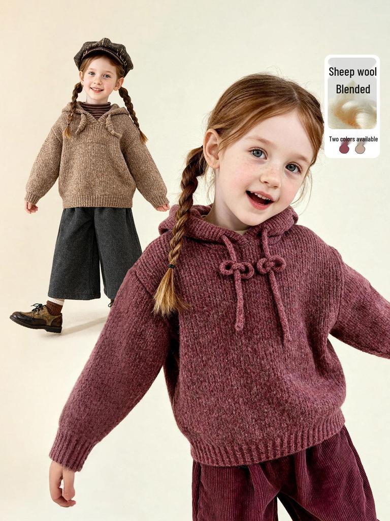 2025 Winter Girls' Solid Color Hooded Sweater - Cotton Wool Blend Knitted Cardigan — cumpără ieftin în cadrul magazinului online Joom